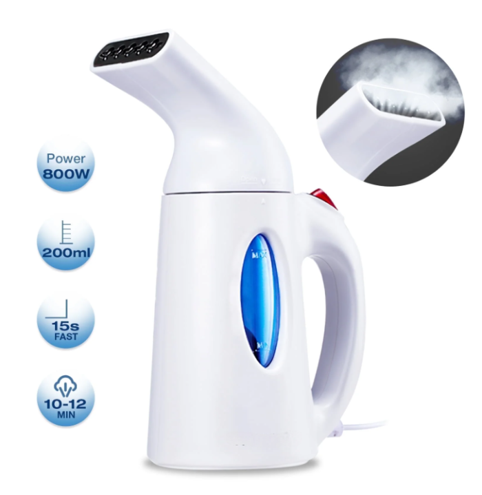 • Portable Travel Clothes Steamer with 8ft Cord: Forget heavy steam irons, this compact and lightweight fabric clothes steamer design is travel and storage-friendly. This handheld travel steamer for clothes is easy to move around with an 8ft extra-long cord.